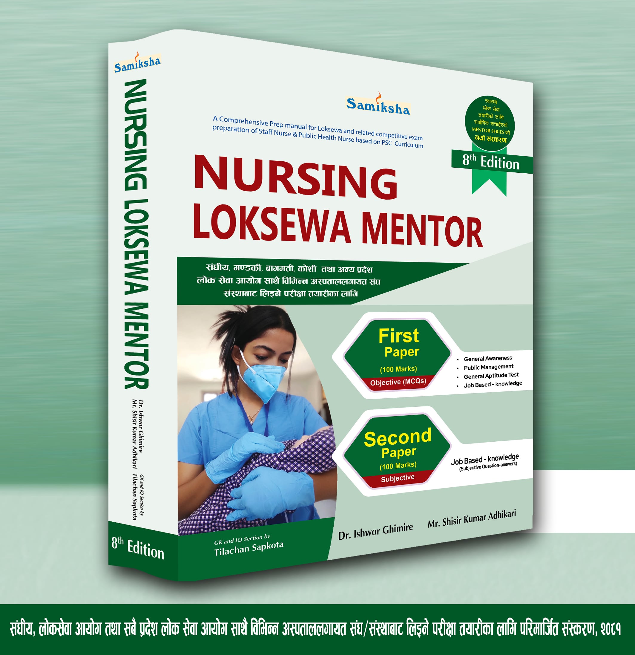 - संघीय, गण्डकी तथा अन्य प्रदेश लोक सेवा आयोग तर्फको पाठ्क्रममा प्रथम पत्र GK, IQ सहितको (50 Marks) सेवा सम्बन्धी (Service related 50 Marks) MCQs समेटिएको र दोस्रो पत्र (Subjective written Exam 100 Marks) समेत गरी दुवै पत्र समेटिएको लिखित परीक्षाको लागि Nursing Loksewa Mentor को All in one परिमार्जित संस्करण
