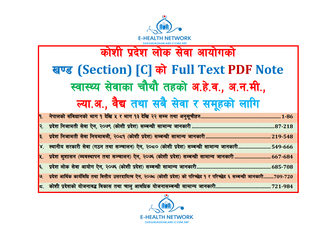 कोशी प्रदेश लोक सेवा आयोगको खण्ड (Section) [C] को Full Text PDF Note स्वास्थ्य सेवाका चौथौ तहको...