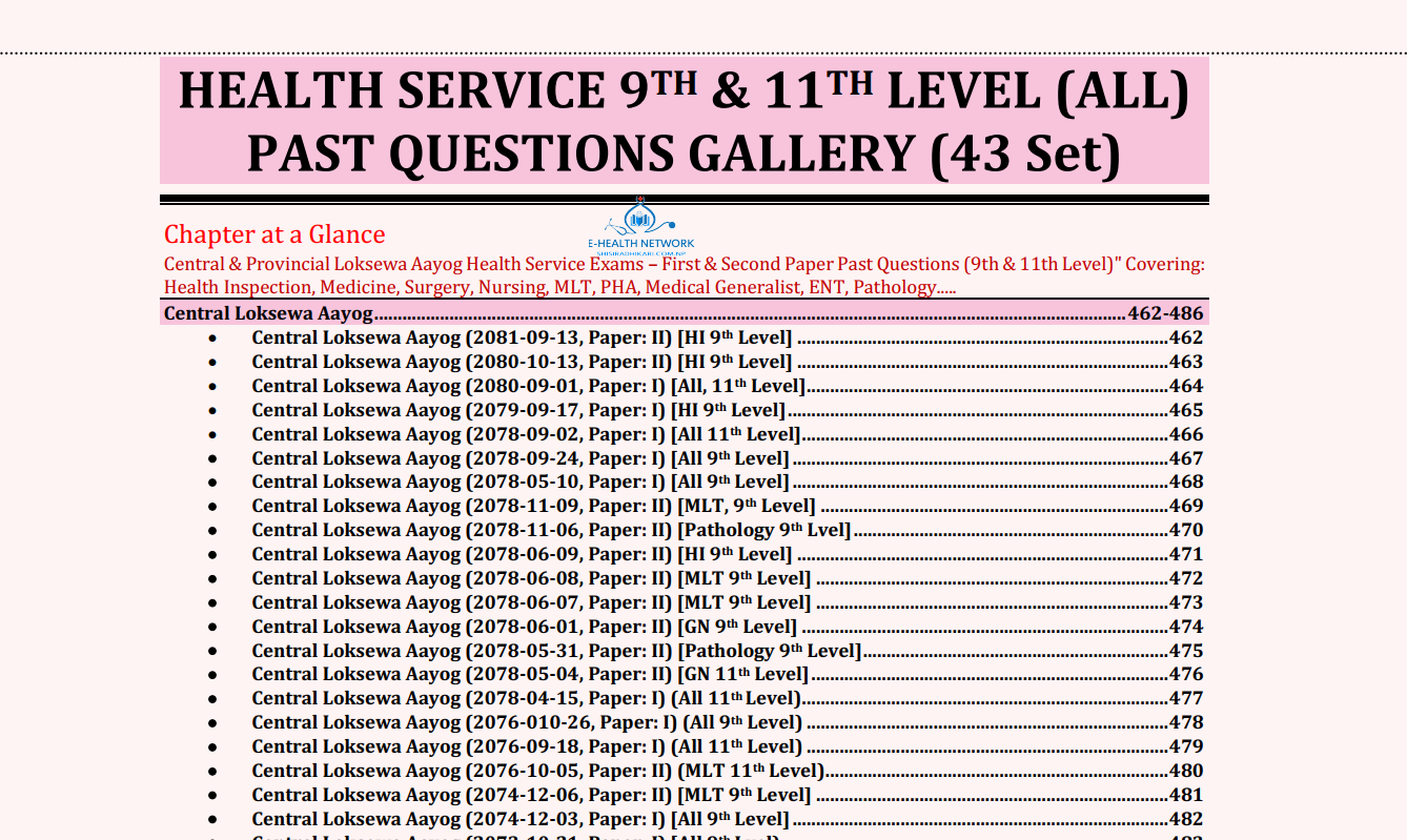 43-Set Master Collection4 Central & Provincial Loksewa Aayog Health Service Exams – First & Second Paper Past Questions (9th & 11th Level)" Covering: Health Inspection, Medicine, Surgery, Nursing,...