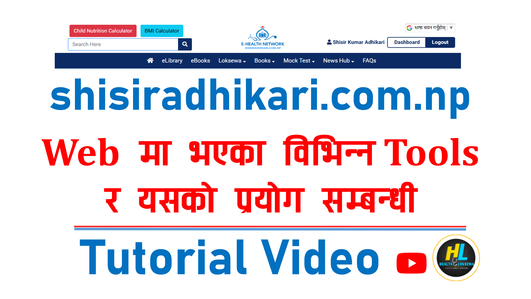 Shisiradhikari.com.np (E.Health Network) Website मा भएका विभिन्न Tools र यसको प्रयोग सम्बन्धी Tutorial Video