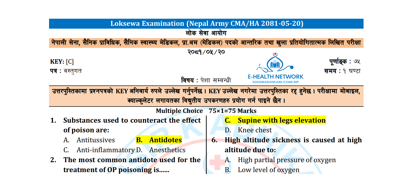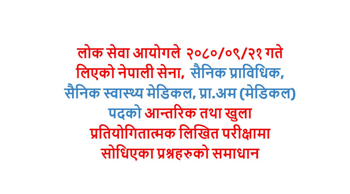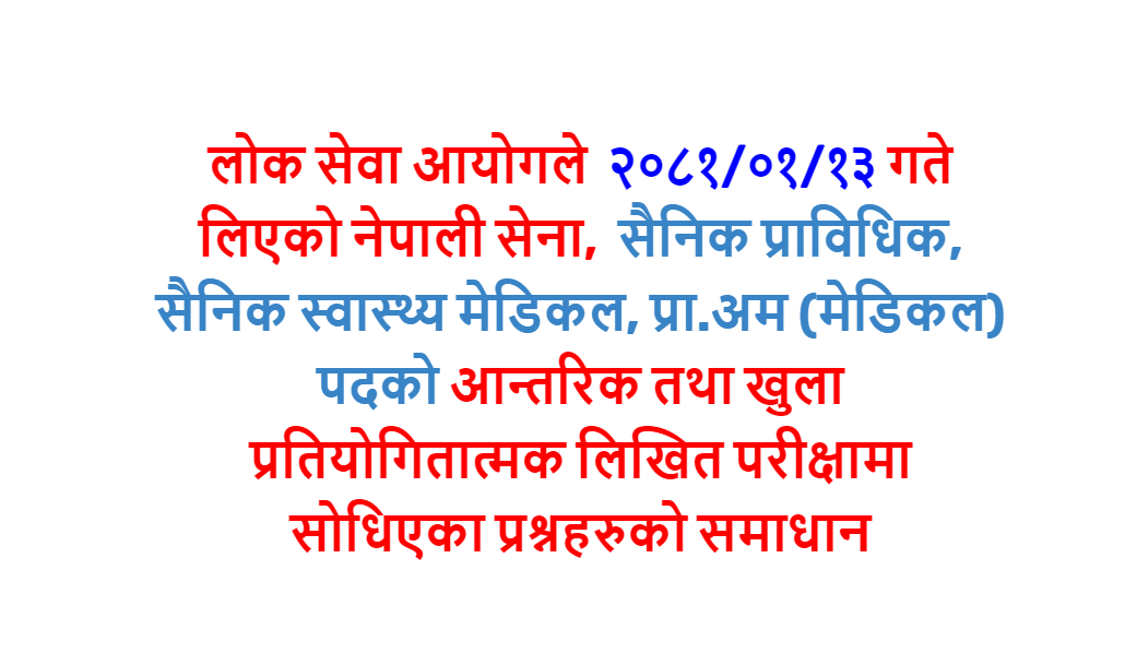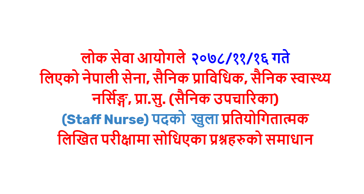 लोक सेवा आयोग || नेपाली सेना नर्सिङ्ग, प्रा.सु. (सैनिक उपचारिका - Staff Nurse) Solutions (2078-11-16)