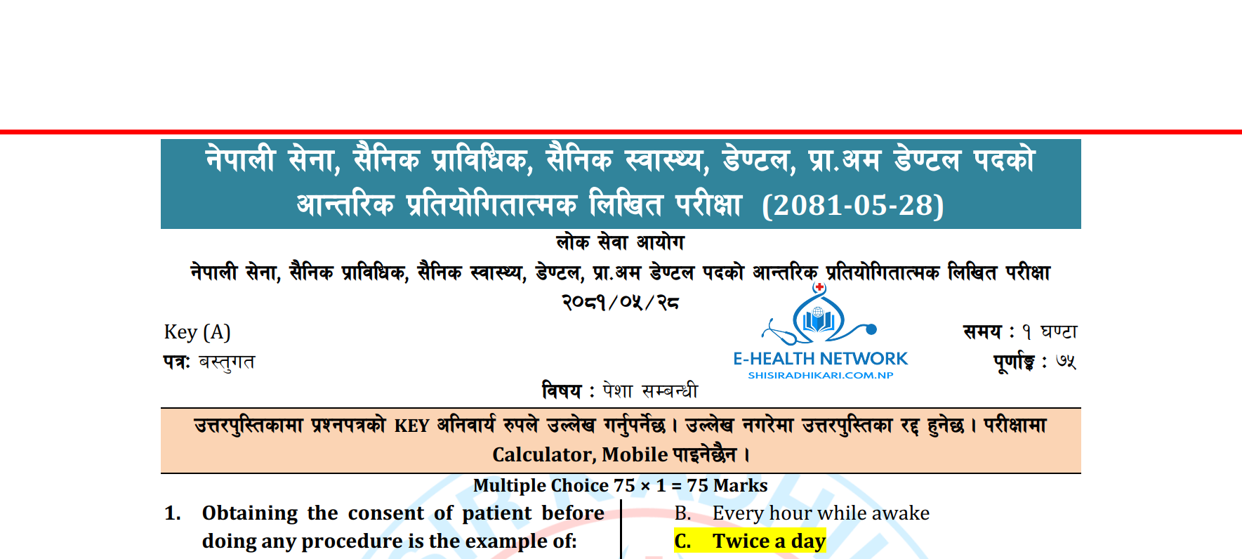 लोक सेवा आयोग || नेपाली सेना प्रा.अम.मेडिकल (Dental) Solutions (2081-01-14)