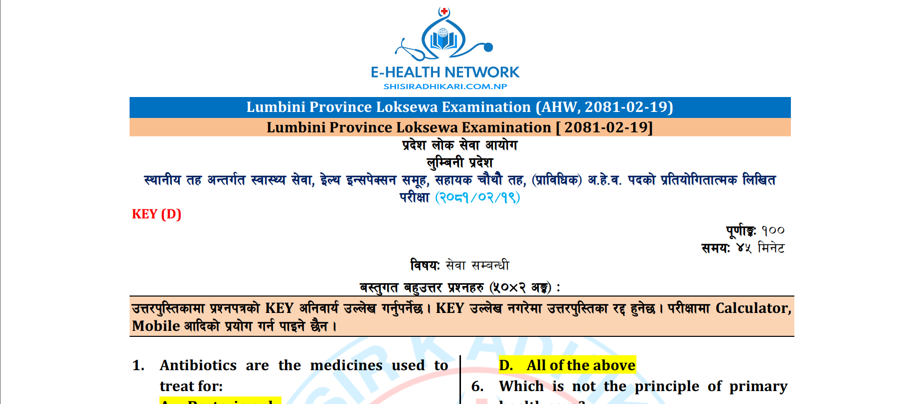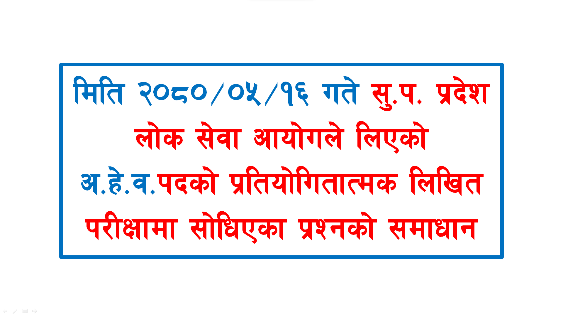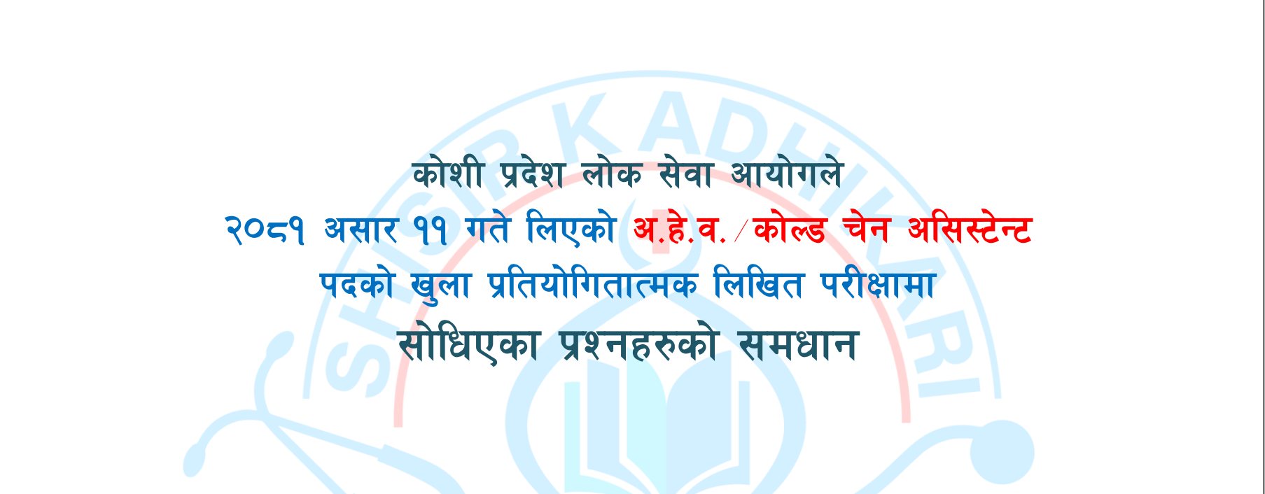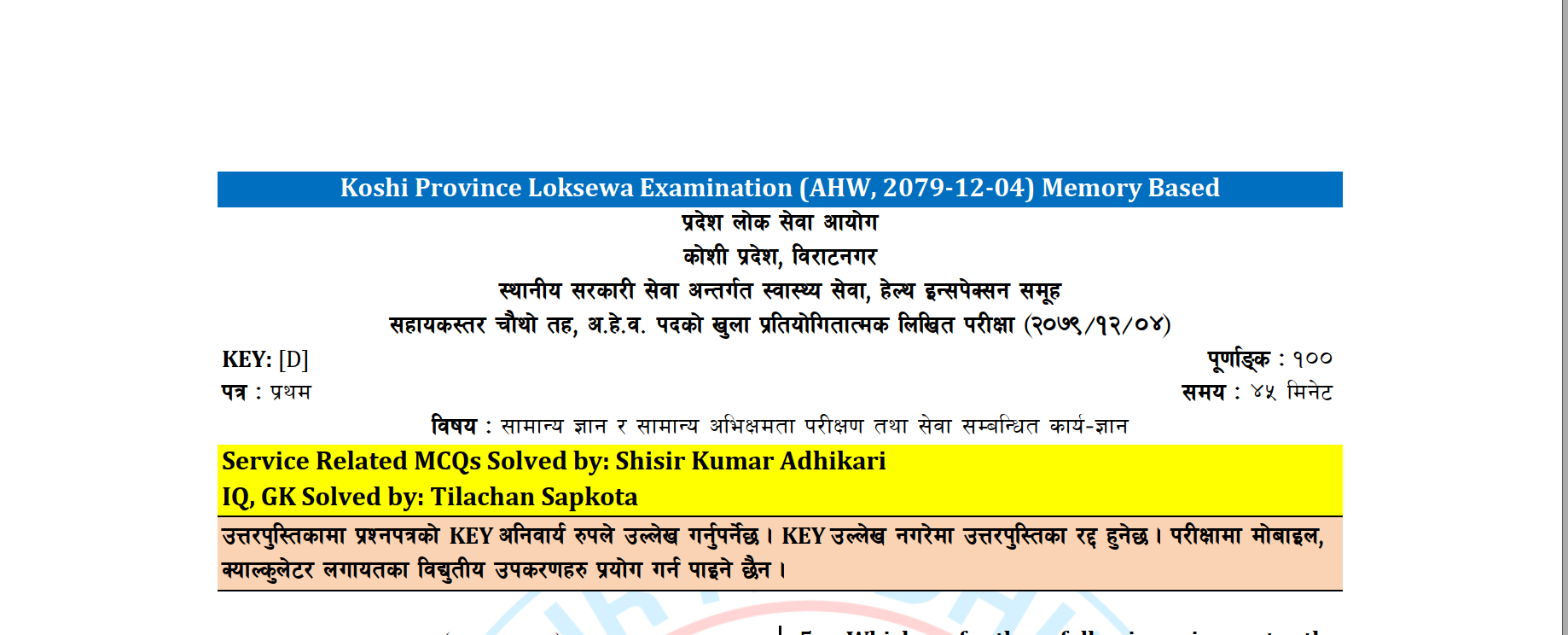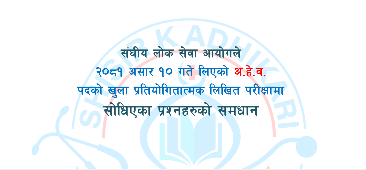 मिति २०८०/०५/१६ गते सु.प. प्रदेश लोक सेवा आयोगले लिएको अ.हे.व.पदको प्रतियोगितात्मक लिखित परीक्षामा सोधिएका प्रश्नको समाधान