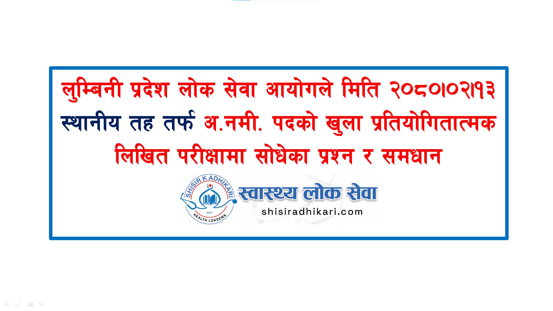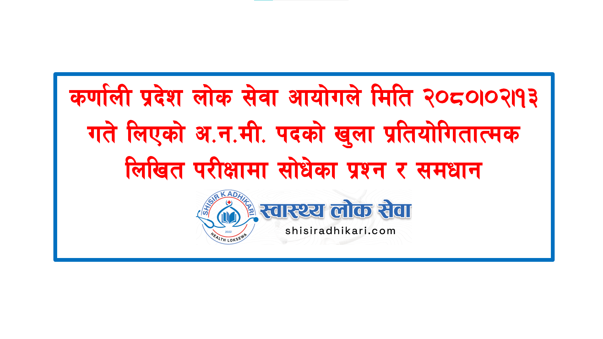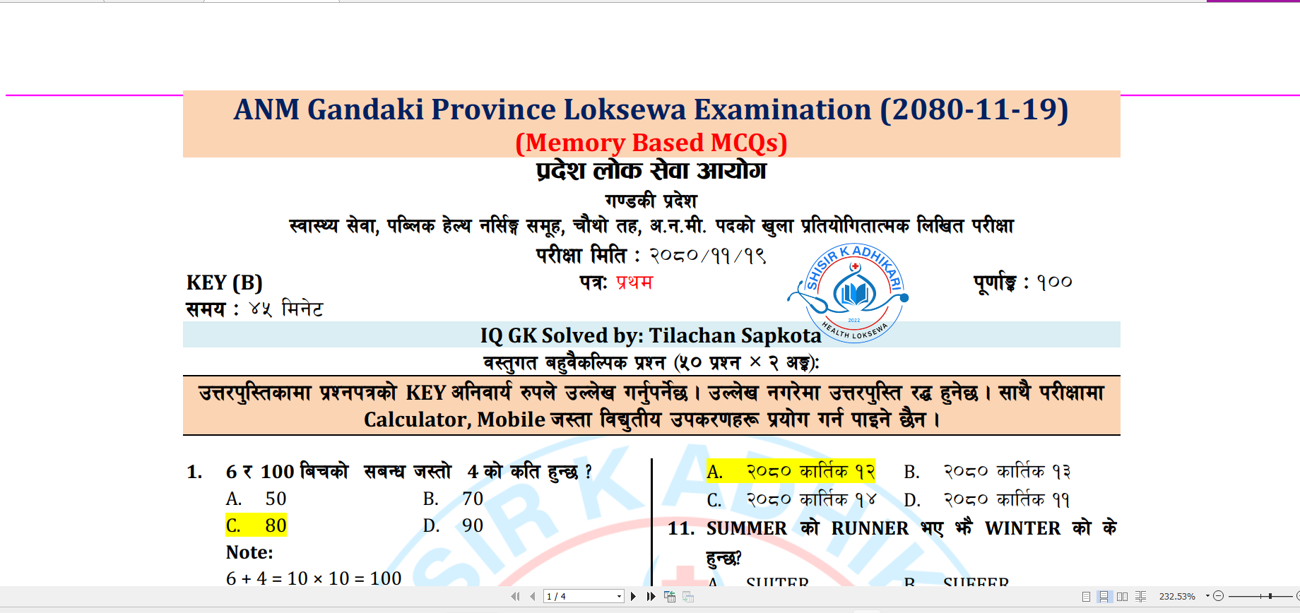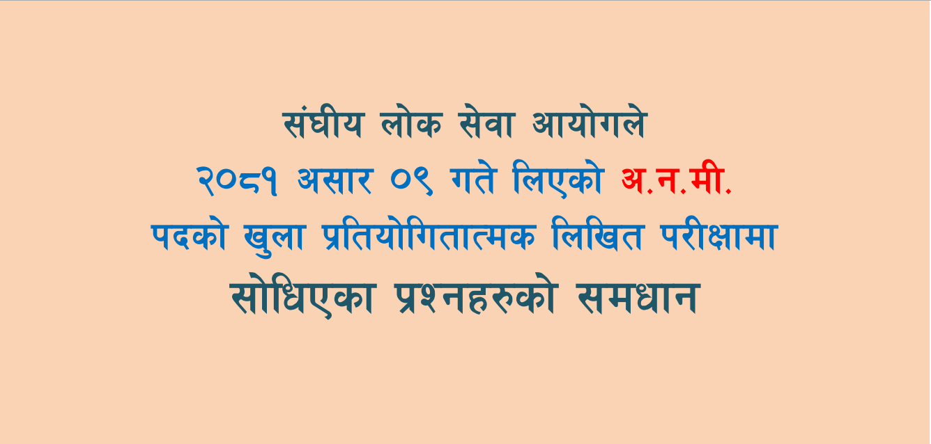गण्डकी प्रदेश लोक सेवा आयोगले मिति २०८०–११–१९ गते लिएको अ.न.मी. पदको परीक्षामा साधेका Memory Based MCQs And Solution