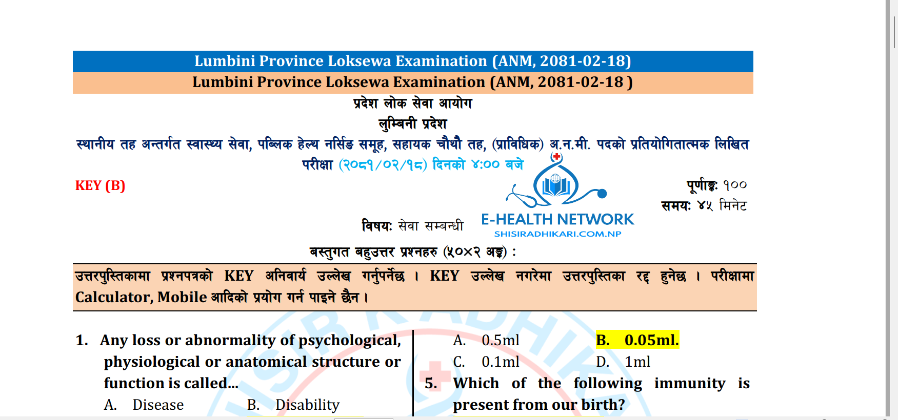 कोशी || स्वास्थ्य || सहायक चौथो || हे.ई. || अ.हे.व. (AHW)