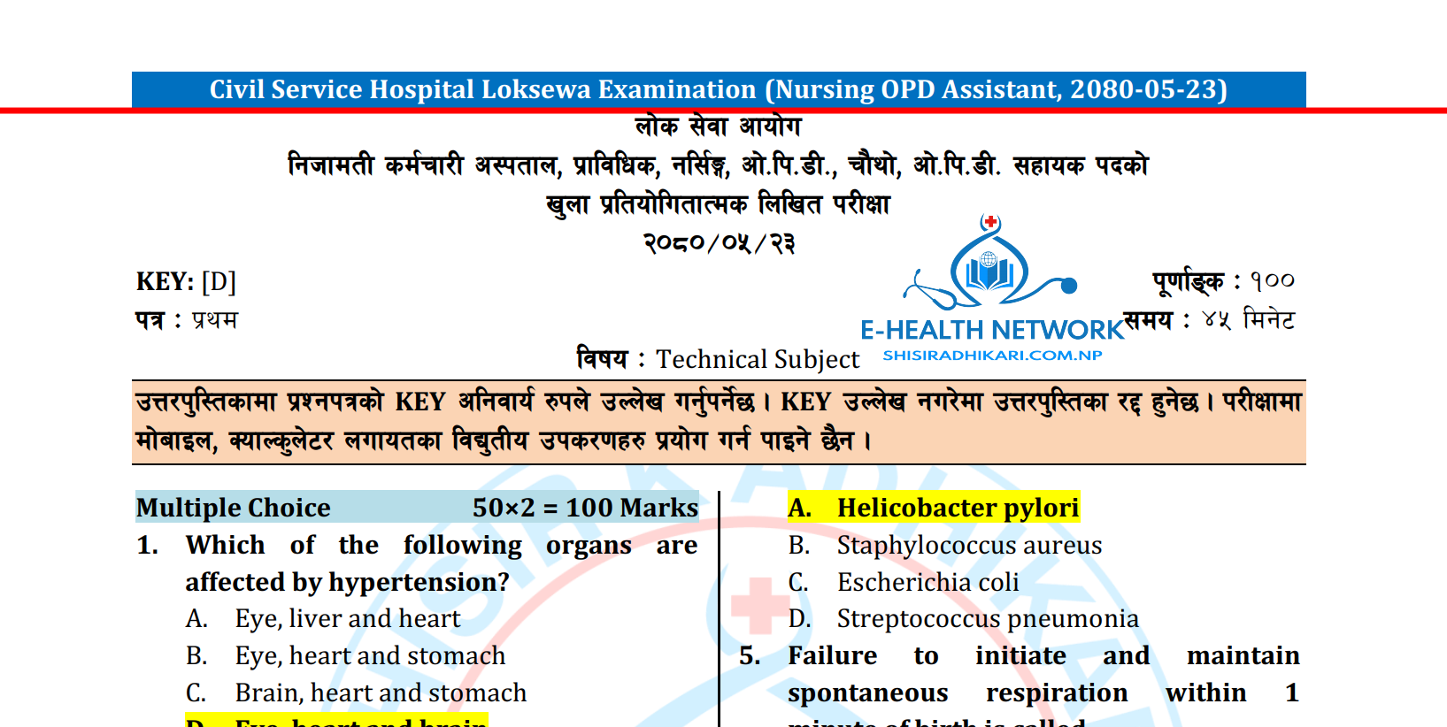 Civil Service Hospital Staff Nurse Loksewa Questions Solutions (2081-06-05)