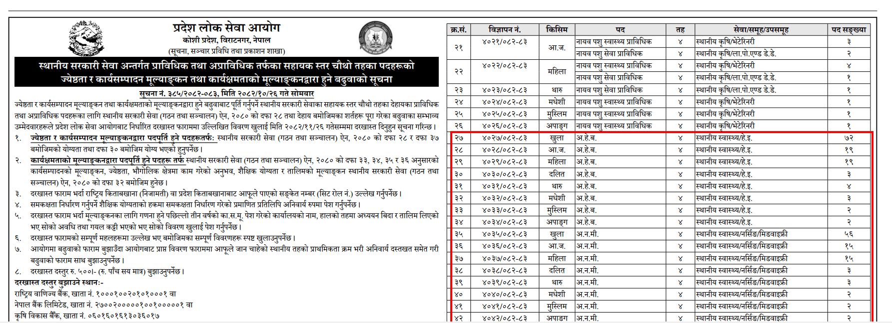 सु.प. लोक सेवा आयोगको प्रदेश स्वास्थ्य सेवा लगायतका विभिन्न सेवाको चौथो तहको विज्ञापन