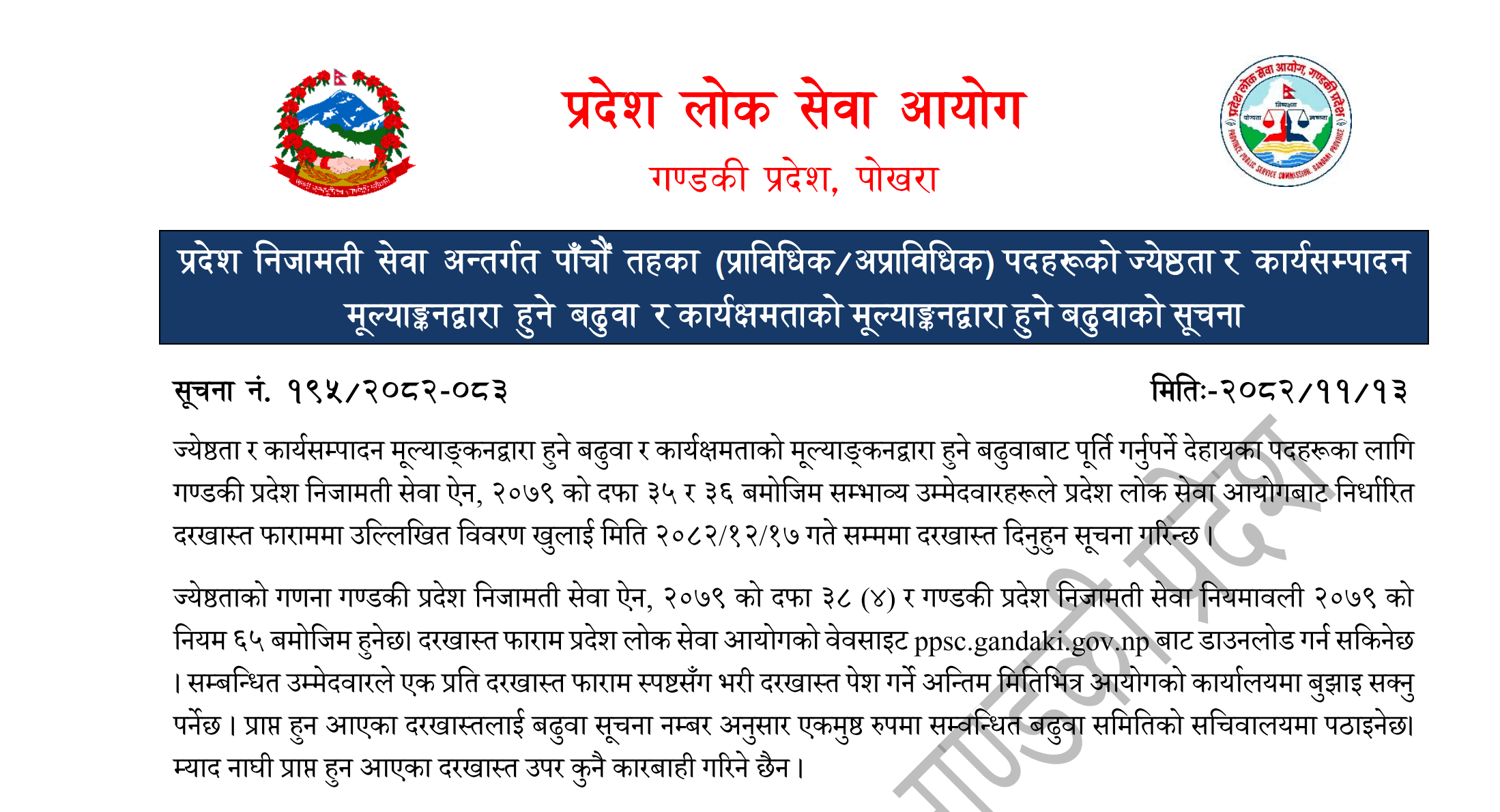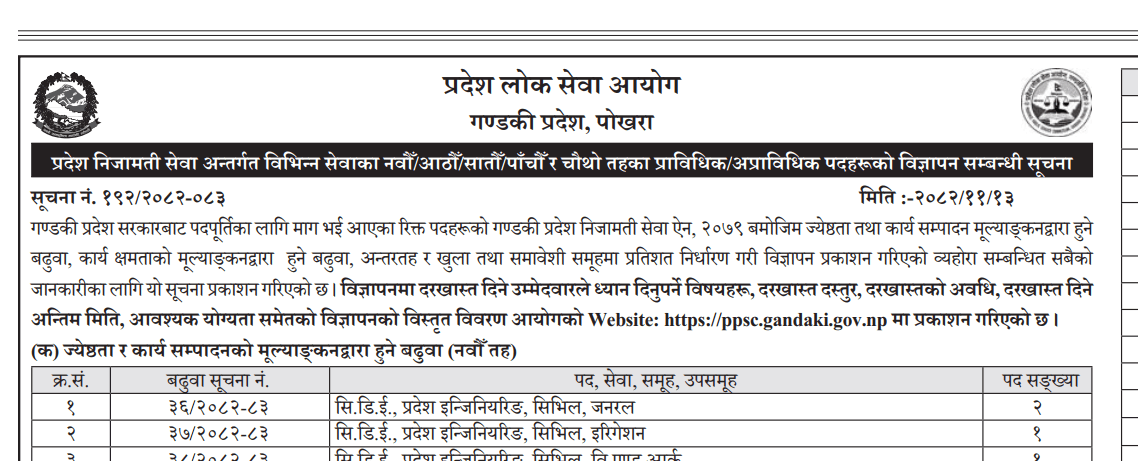 Gandaki Province Loksewa 7th, 8th and 9th Level Vacancy