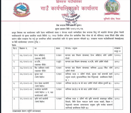 Jhimruk Rural Municipality Vacancies for HA, ANM and Vaidya