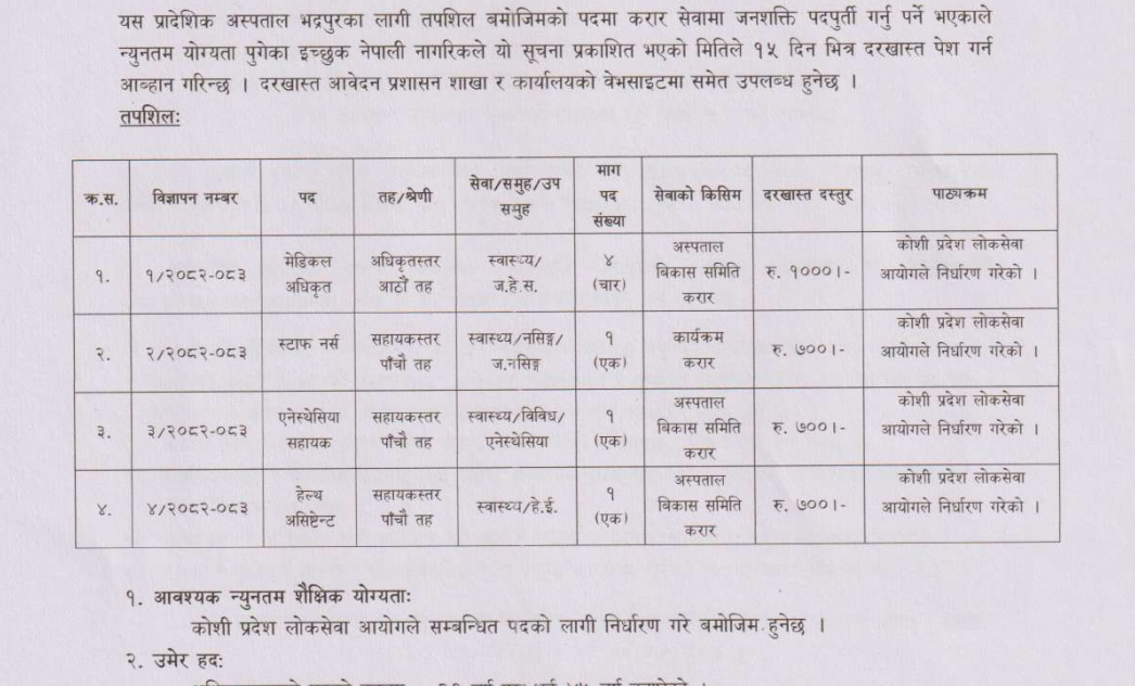 भद्रपुर अस्पताल झापामा कर्मचारी आवश्यकता सम्बन्धी सूचना