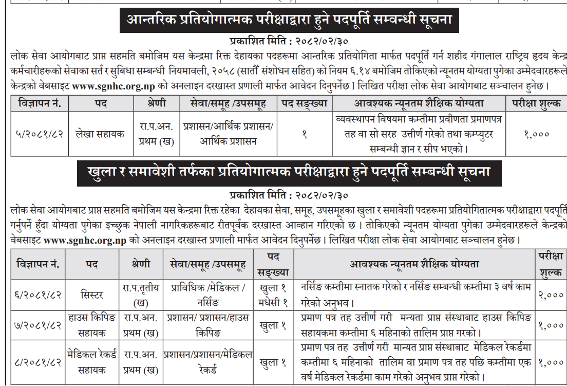 शहीद गंगालाल राष्ट्रिय हृदय रोग केन्द्रमा कर्मचारी आवश्यकता