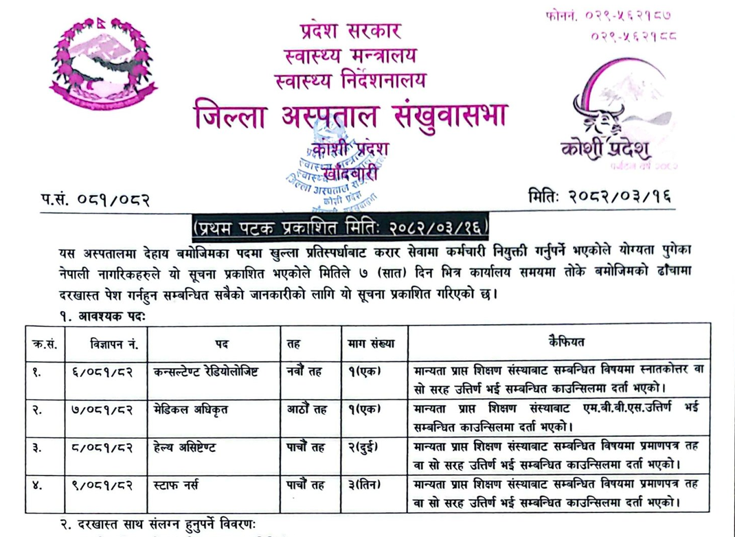 जिल्ला अस्पताल भोजपुरमा कर्मचारी आवश्यकता सम्बन्धी सूचना