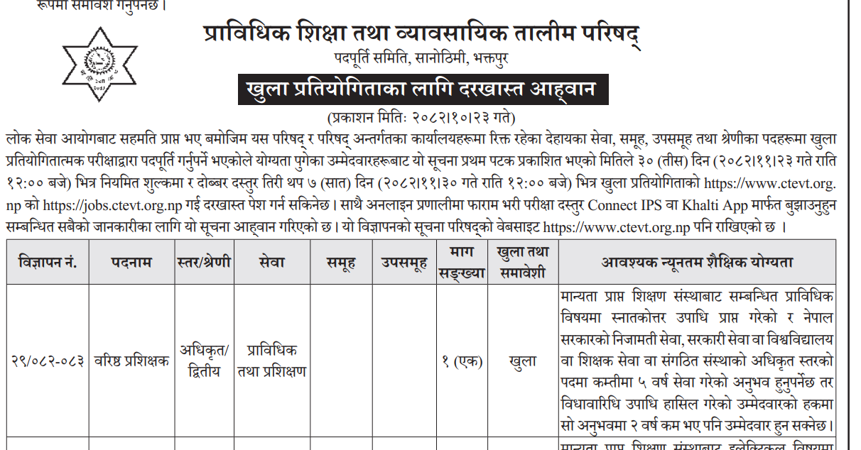 CTEVT Vacancies for Various Posts