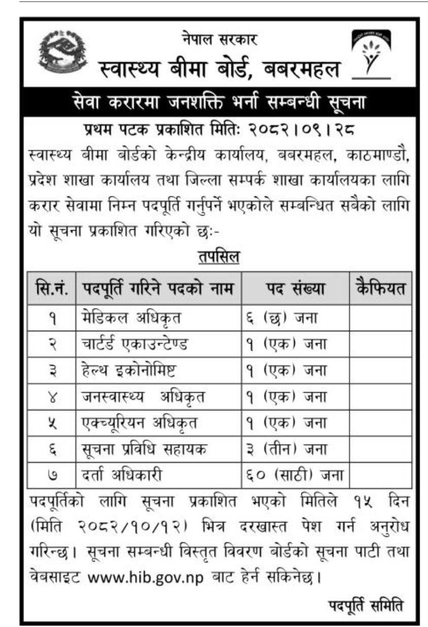Vacancy Announcement for Various Posts at Health Insurance Board