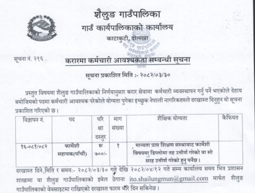 शैलुङ गाउँपालिकामा फार्मेशी सहायक आवश्यकता सम्बन्धी सूचना