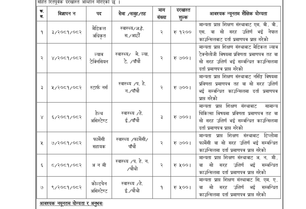 बुद्धशान्ति गाउँपालिका झापामा चिकित्सक र स्वास्थ्यकर्मी आवश्यकता सम्बन्धी सूचना