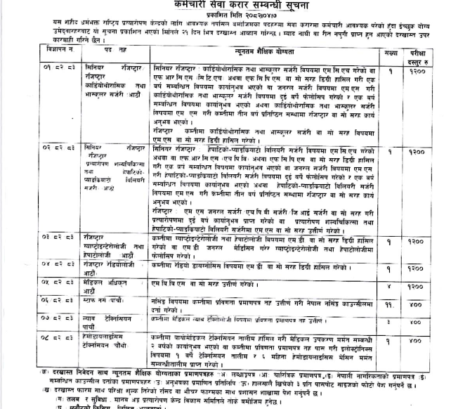 निजामती कर्मचारी अस्पतालमा ३२ जना कर्मचारी आवश्यकता सम्बन्धी सूचना
