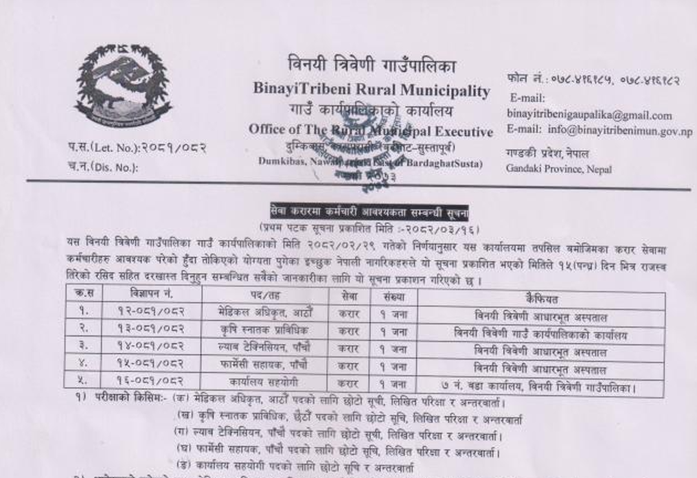 विनयी–त्रिवेणी गाउँपालिका नवलपरासीमा कर्मचारी आवश्यकता