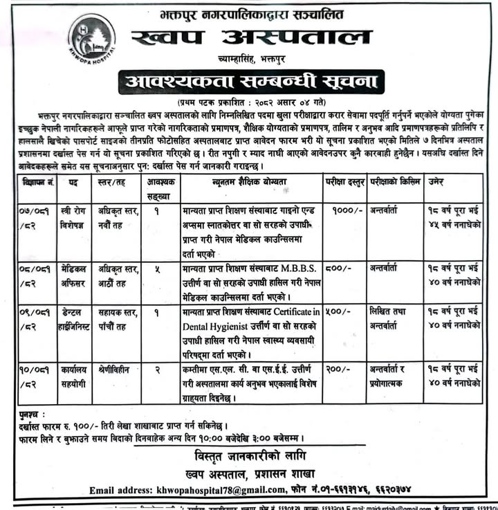 Khwopa Hospital Bhaktapur Vacancies for Various Posts