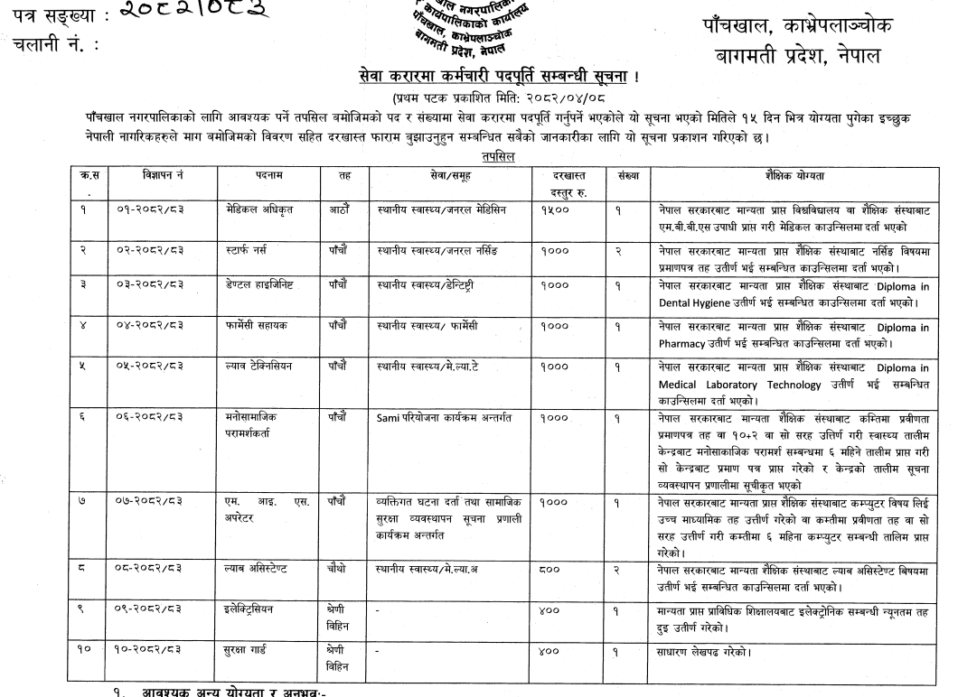 पाँचखाल नगरपालिकामा कर्मचारी आवश्यकता