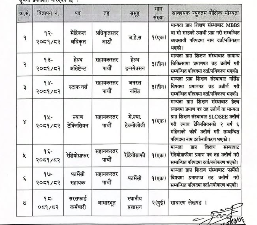 बुद्धशान्ति गाउँपालिका झापामा चिकित्सक र स्वास्थ्यकर्मी आवश्यकता सम्बन्धी सूचना