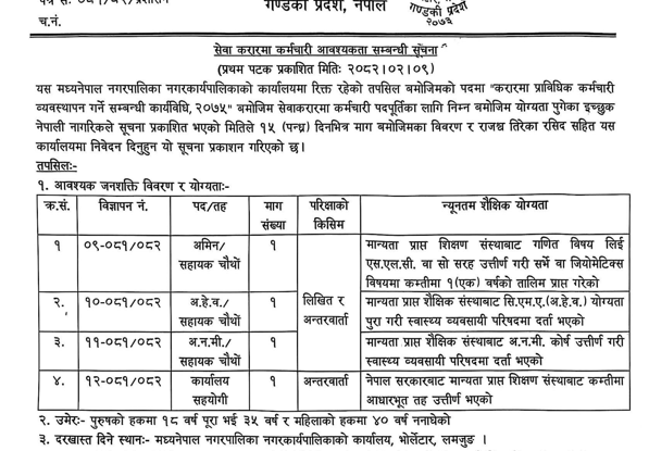 Madhyanepal Municipality Lamjung Vacancies for Various Posts