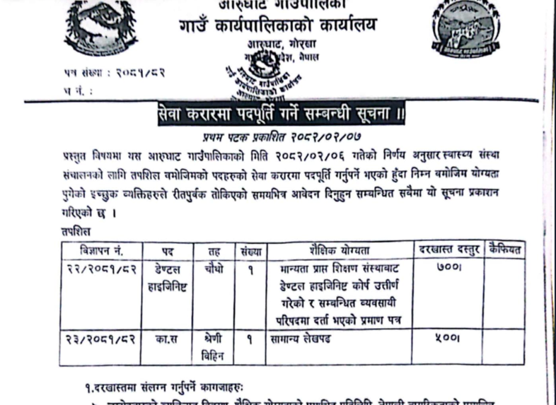 Arughat Rural Municipality Vacancy for Various Posts