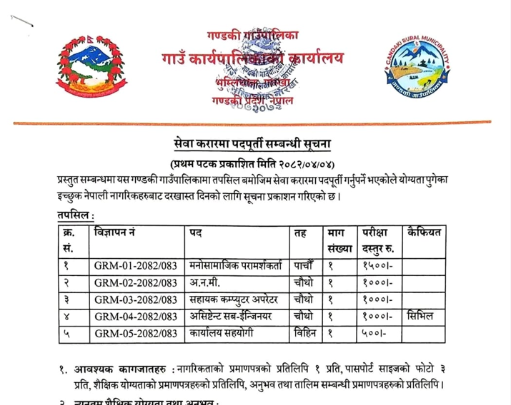 गण्डकी गाउँपालिका भुम्लिचोक, गोरखामा कर्मचारी आवश्यकता सम्बन्धी सूचना