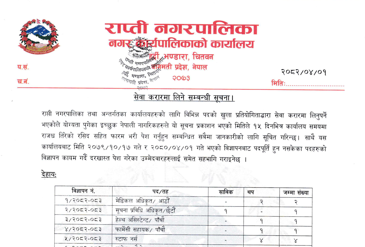 राप्ती नगरपालिका चितवनमा कर्मचारी आवश्यकता सम्बन्धी सूचना