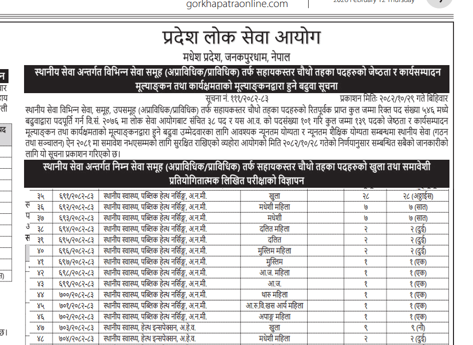 Madhesh Loksewa 4th Level Vacancy