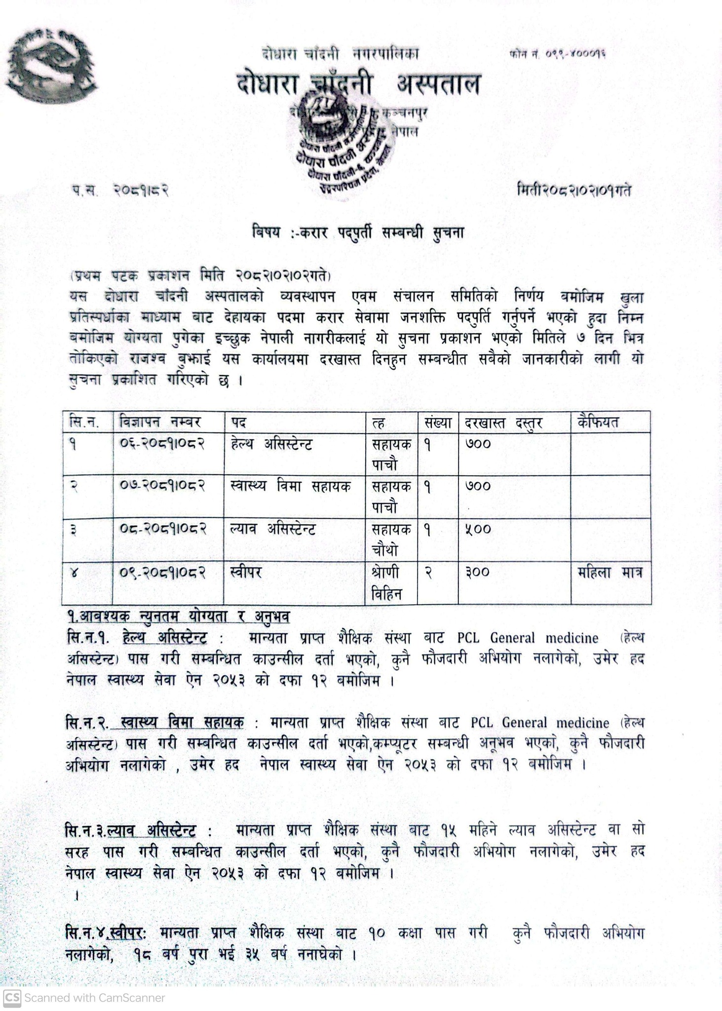 भद्रपुर अस्पताल झापामा कर्मचारी आवश्यकता सम्बन्धी सूचना