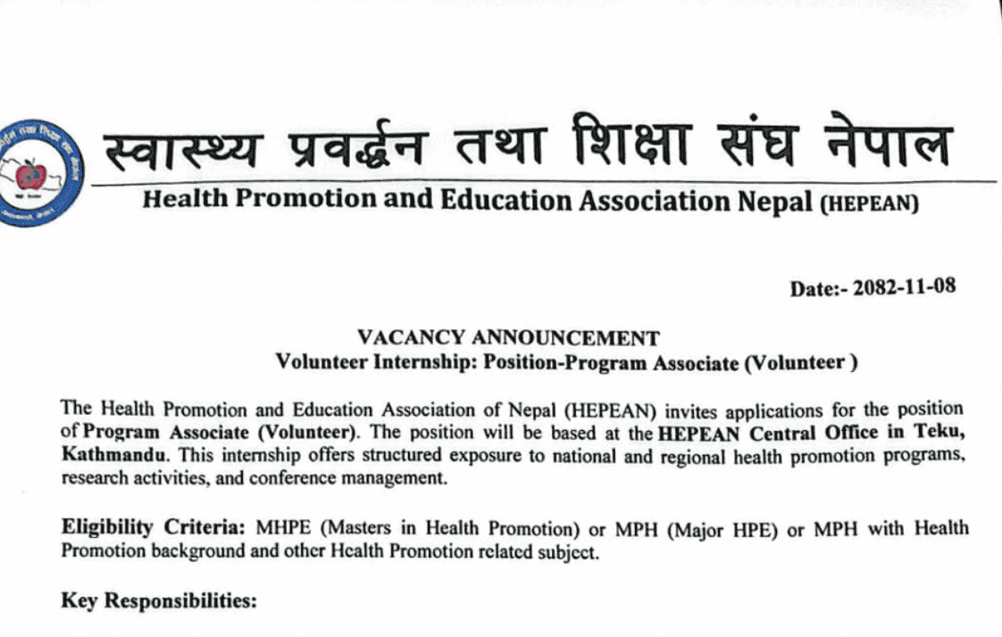 Internship Opportunity at HEPEAN