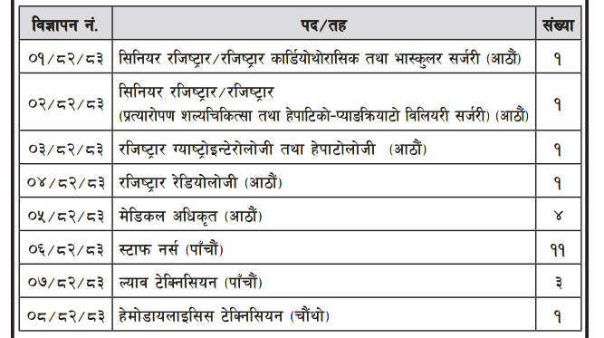 सहिद धर्मभक्त राष्ट्रिय प्रत्यारोपण केन्द्रमा कर्मचारी आवश्यकता र Transplant विषयमा Fellowship कार्यक्रममा भर्ना सम्बन्धी सूचना