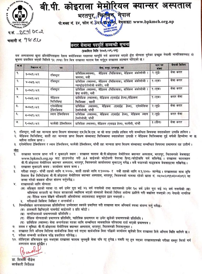 बी.पी. कोइराला मेमोरियल क्यान्सर अस्पतालमा कर्मचारी आवश्यकता सम्बन्धी सूचना