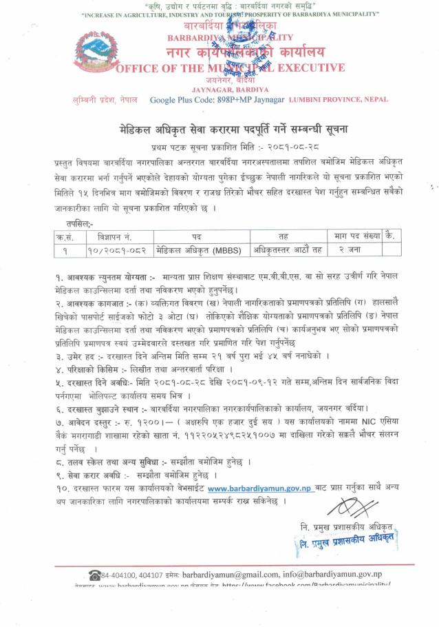 बारबर्दिया नगरपालिकामा मे.अ. आवश्यकता सम्बन्धी सूचना