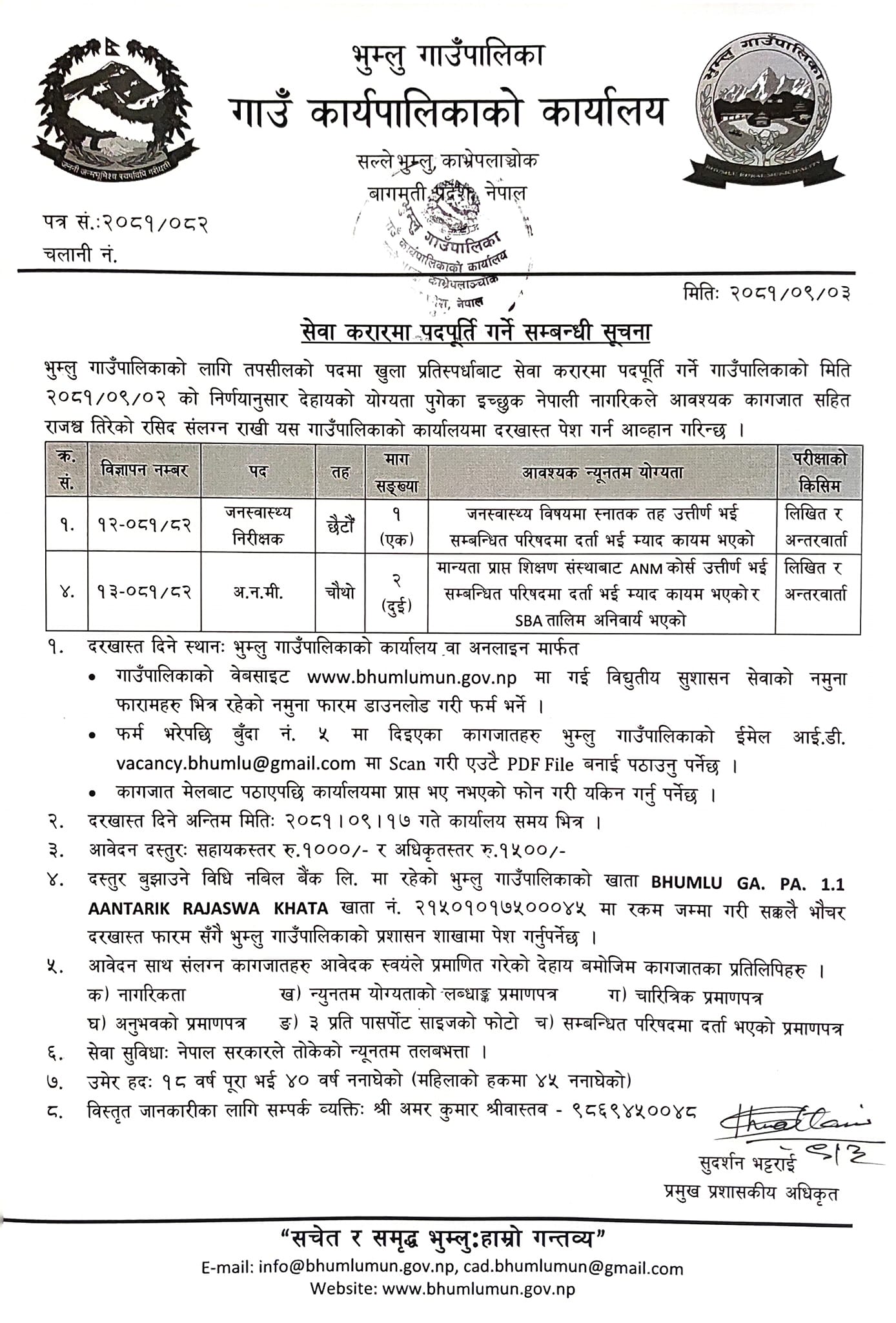 भुम्लु गाउँपालिका काभ्रेमा जनस्वास्थ्य निरीक्षक र अ.न.मी. आवश्यकता सम्बन्धी सूचना