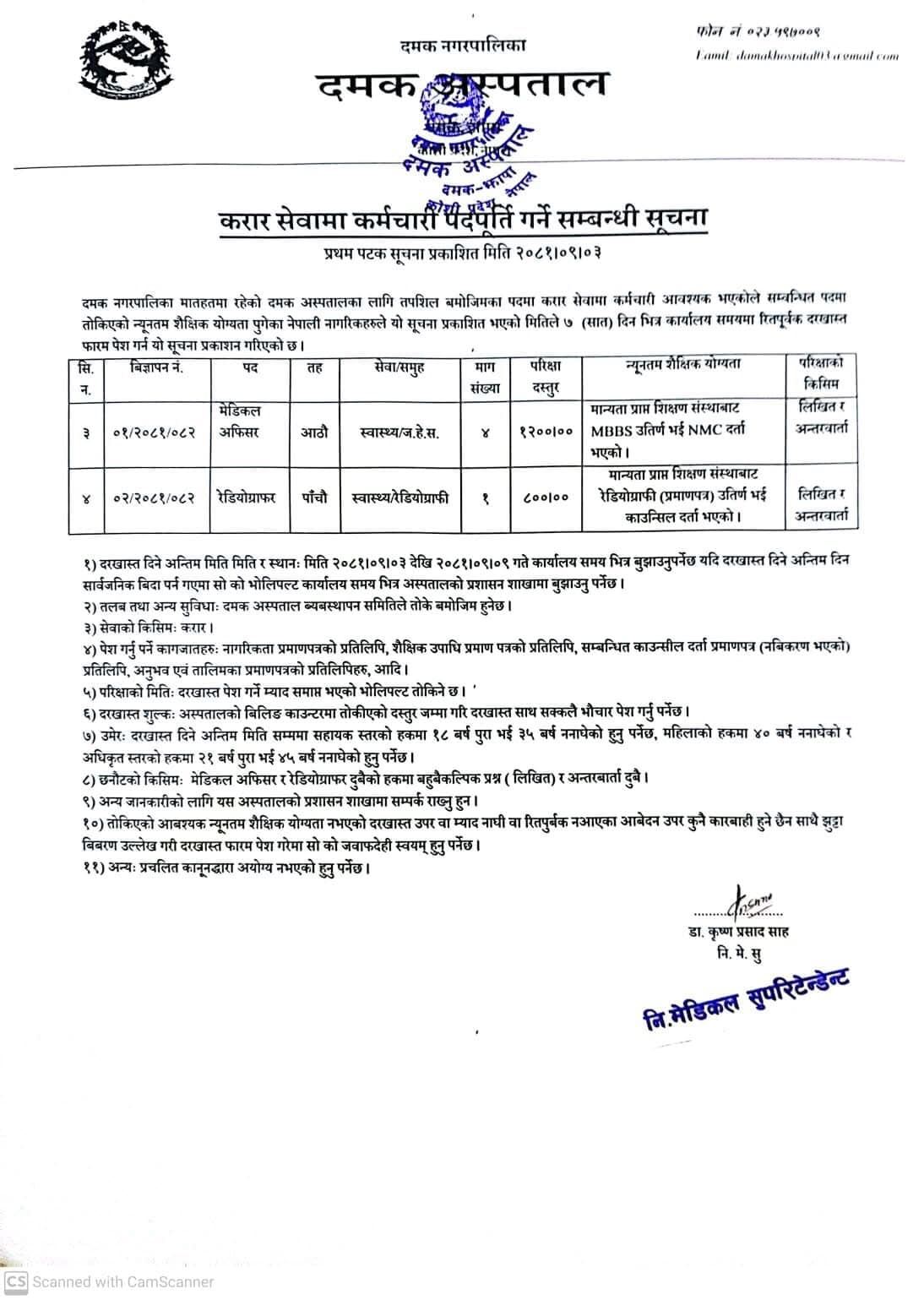 दमक अस्पताल झापामा कर्मचारी आवश्यकता सम्बन्धी सूचना