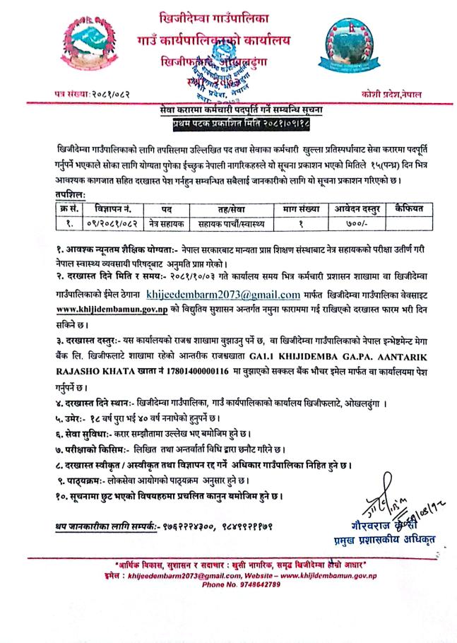 खिजीदेम्वा गाउँपालिकामा कर्मचारी आवश्यकता सम्बन्धी सूचना