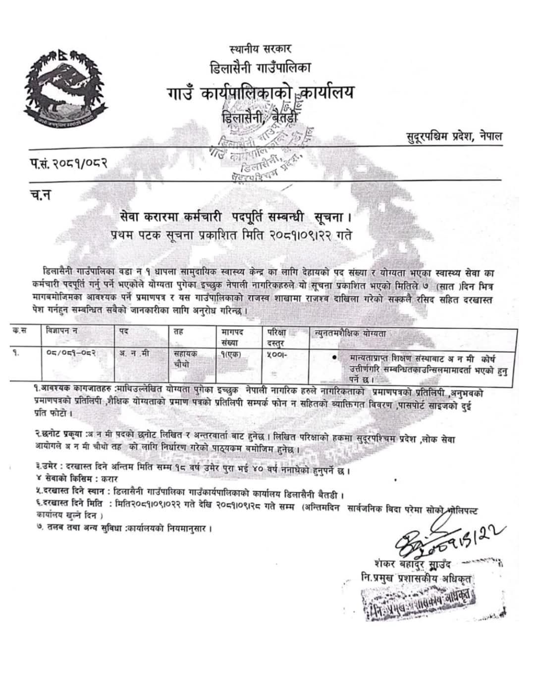 डिलासैनी गाउँपालिकामा अ.न.मी. आवश्यकता सम्बन्धी सूचना