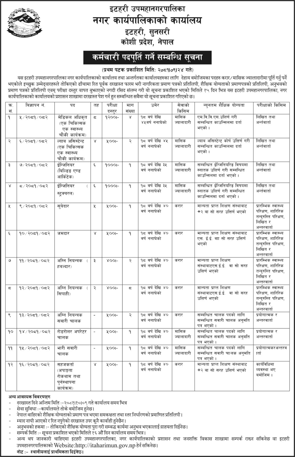 इटहरी उप–महानगरपालिकामा कर्मचारी आवश्यकता सम्बन्धी सूचना
