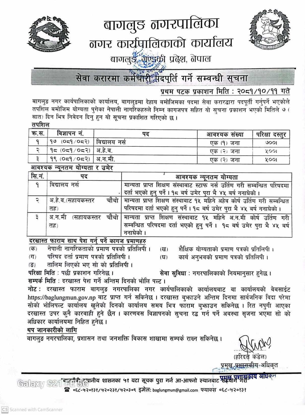 बागलुङ नगरपालिका बागलुङमा विद्यालय नर्स, अ.हे.व. र अ.न.मी. आवश्यकता सम्बन्धी सूचना