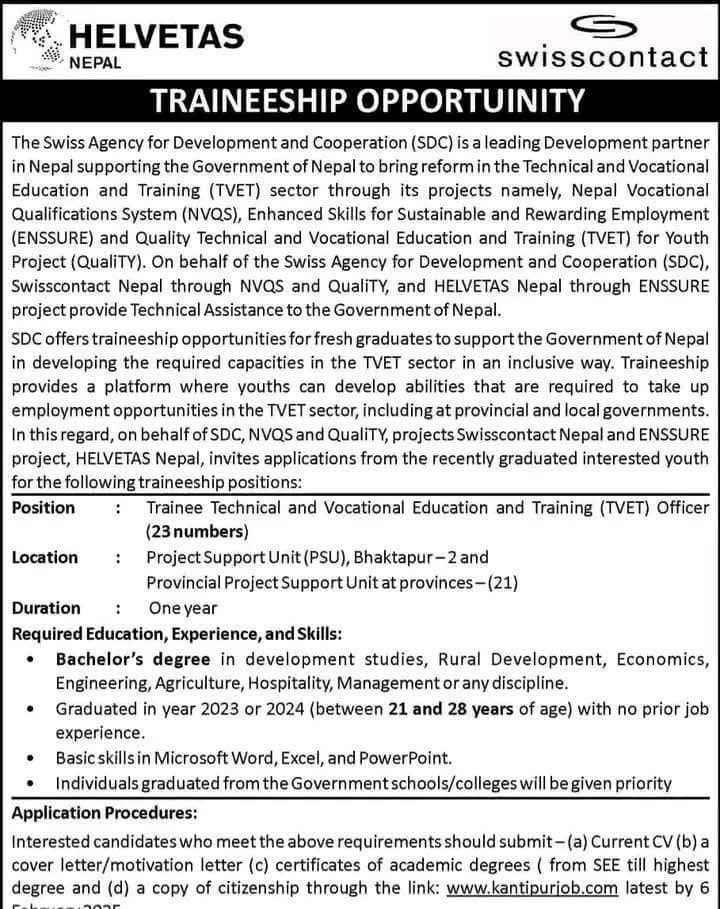 Traineeship Opportunity at Helvetas Nepal
