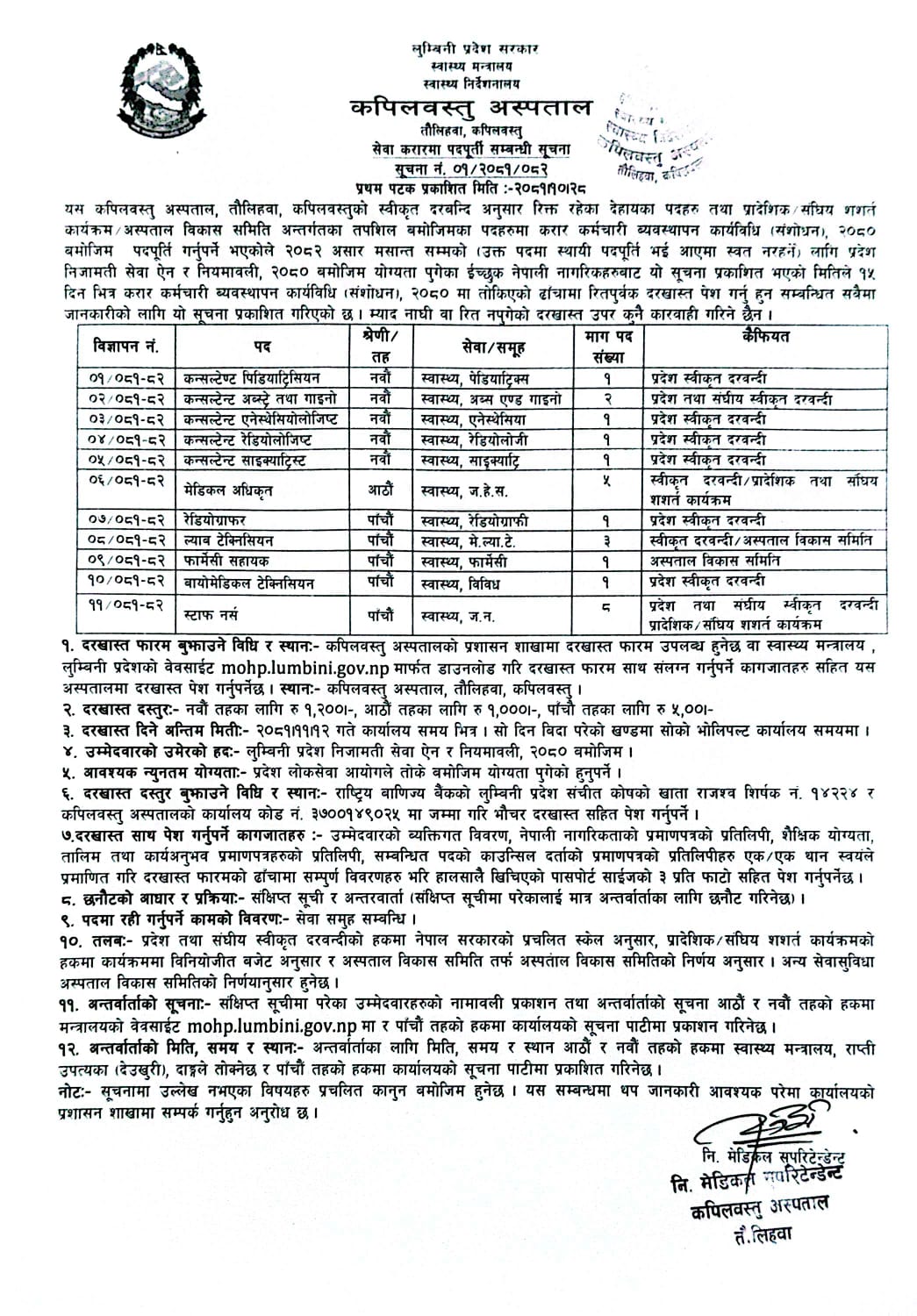 कपिलवस्तु अस्पताल तौलिहवा, कपिलवस्तुमा चिकित्सक र स्वास्थ्यकर्मी आवश्यकता सम्बन्धी सूचना
