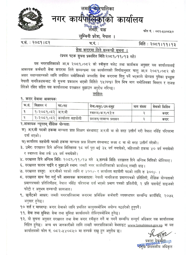 लमही नगरपालिकामा कर्मचारी आवश्यकता