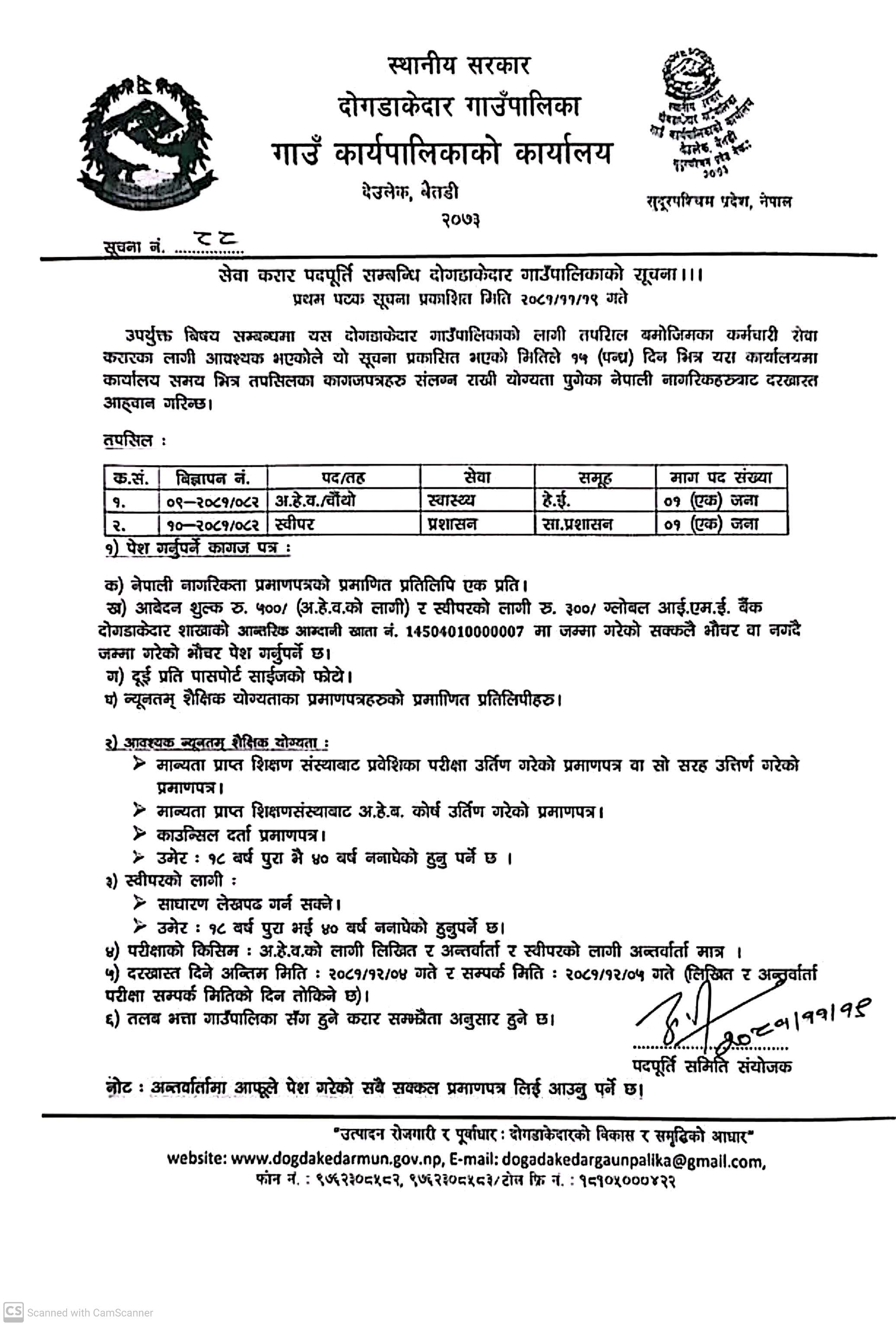 दोगडाकेदार गाउँपालिकामा कर्मचारी आवश्यकता सम्बन्धी सूचना