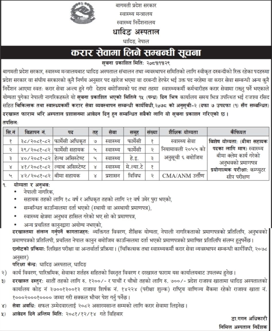 धादिङ अस्पतालमा कर्मचारी आवश्यकता सम्बन्धी सूचना