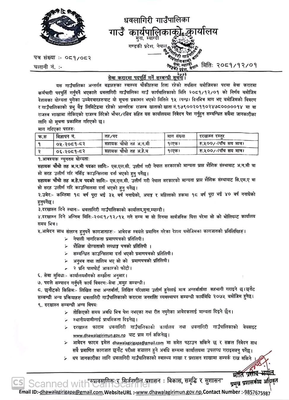 धवलागिरी गाउँपालिकामा अ.ह.व./अ.न.मी. आवश्यकता सम्बन्धी सूचना