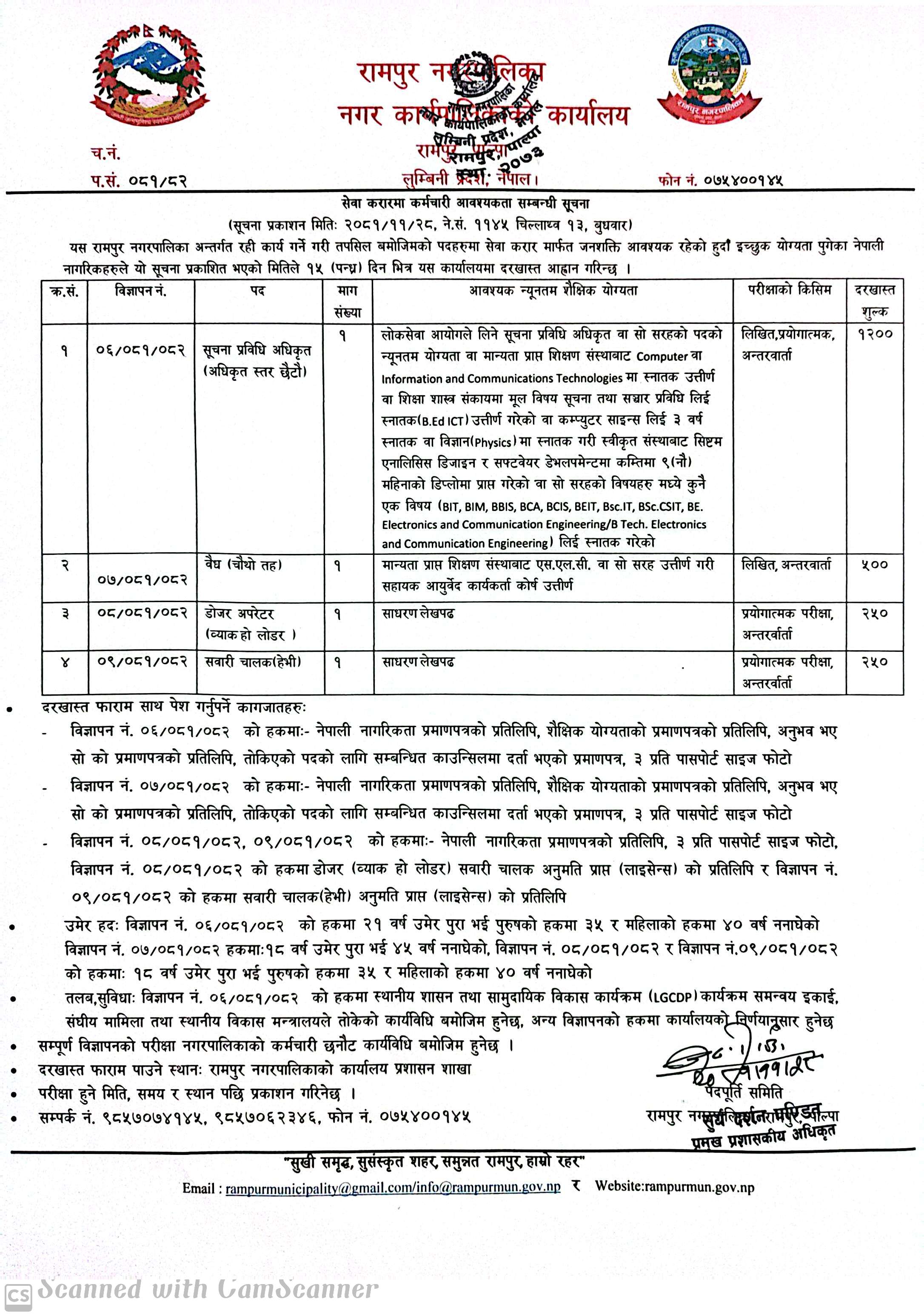 रामपुर नगरपालिका पाल्पामा करार सेवामा कर्मचारी आवश्यकता सम्बन्धी सूचना
