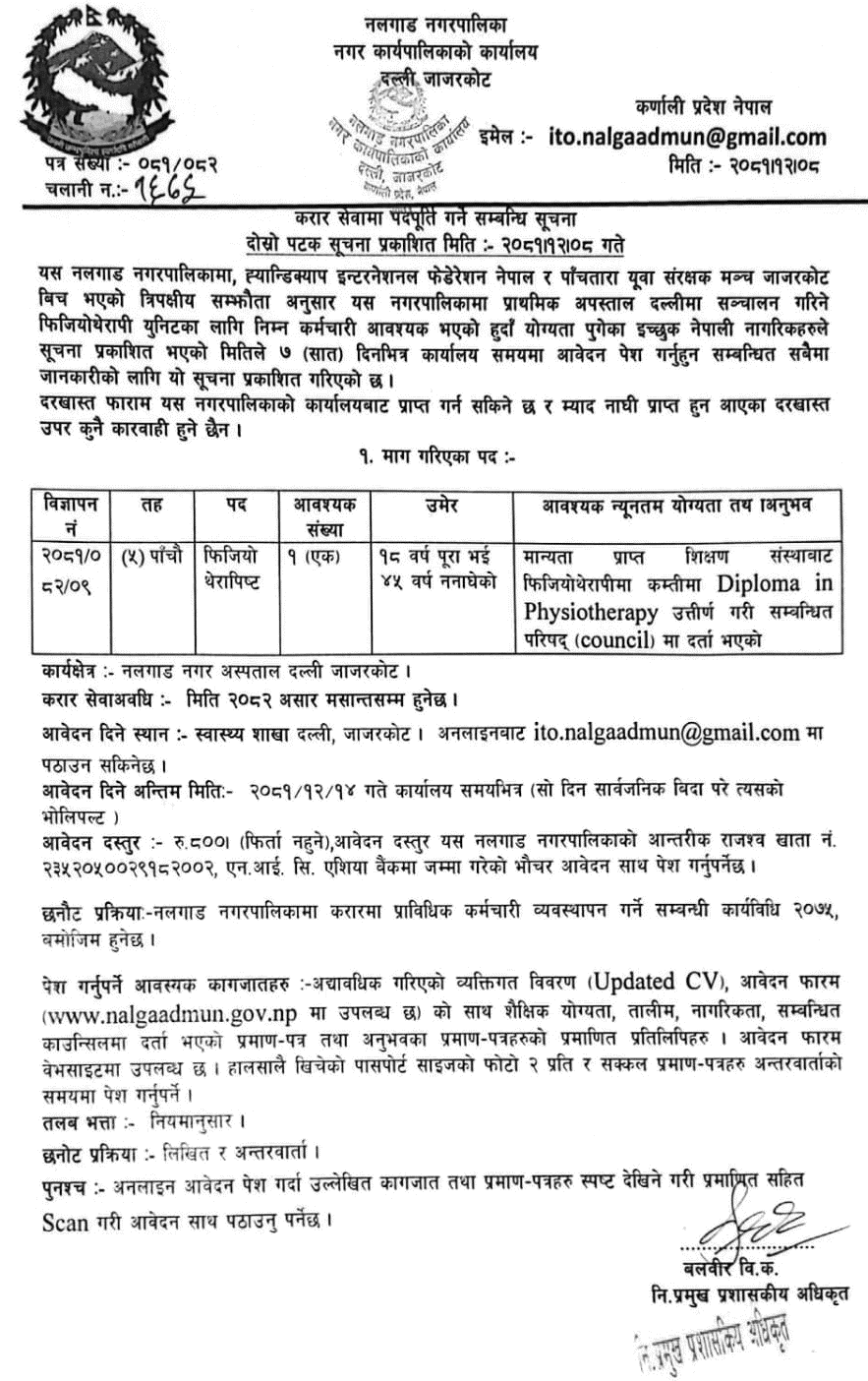 Physiotherapist Vacancy at Nalgad Municipality