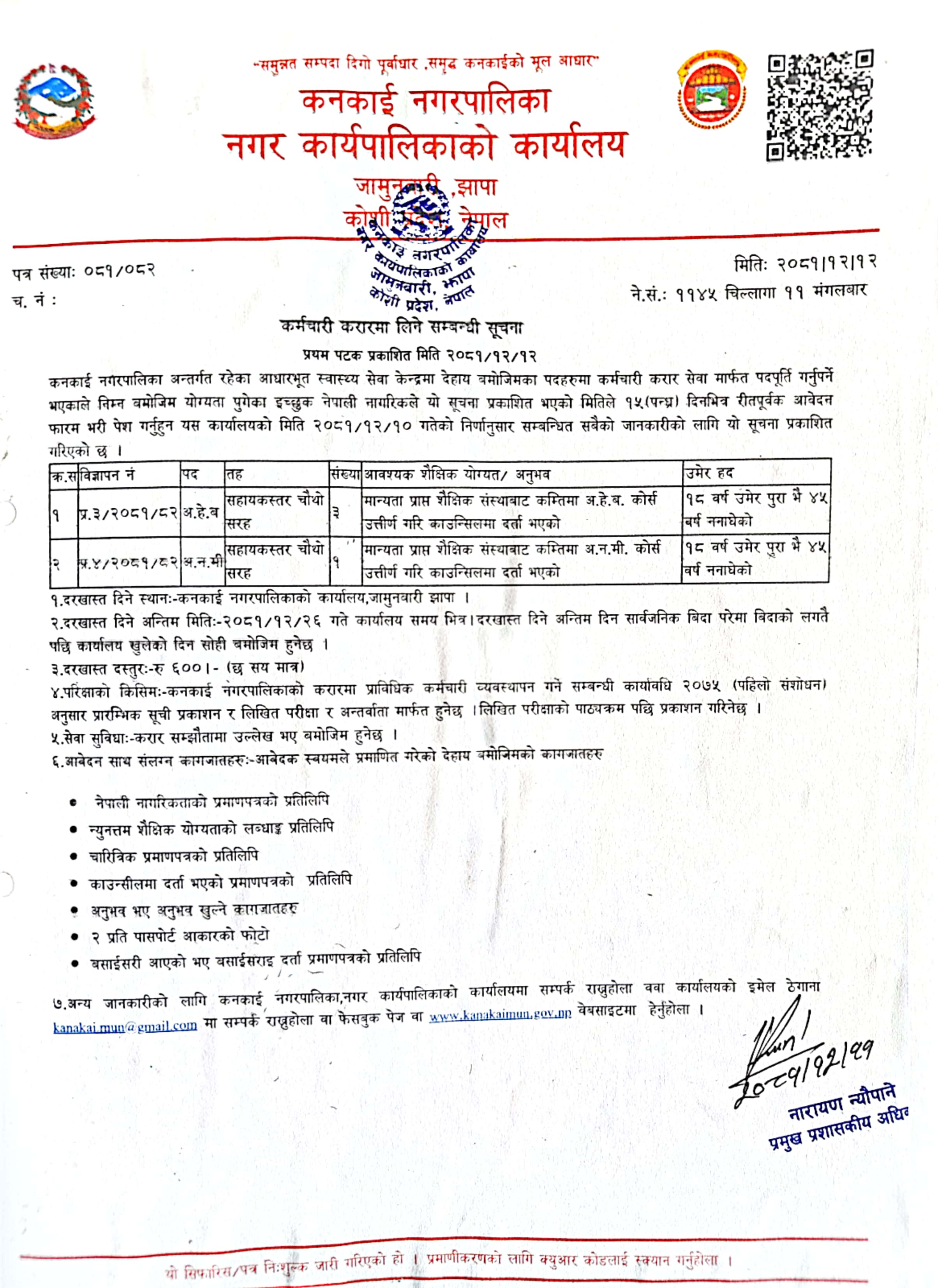 Vacancy Announcement for AHW/ANM